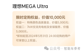 此外,官网最新页面显示,理想MEGA降价的同时,推出了限时权益:颜色选装和充电桩免费送。