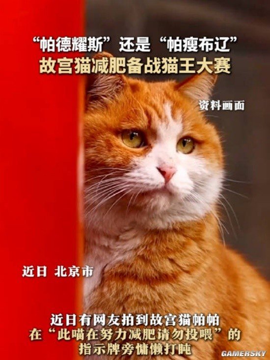 近日,有网友拍到故宫猫帕帕在减肥指示牌旁打盹,三过饭盆而不进膳,引发热议。