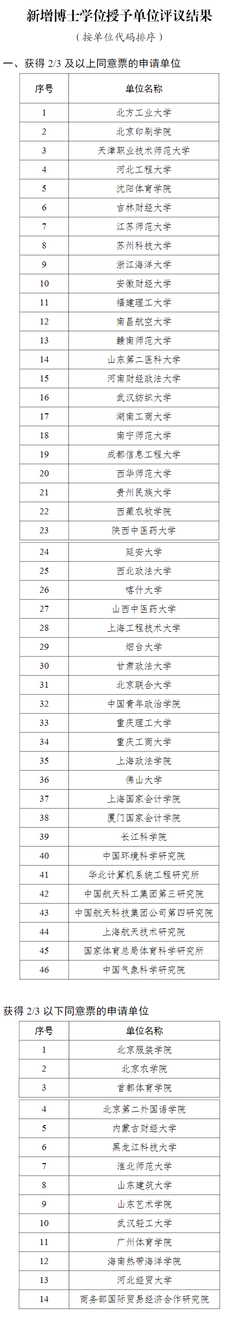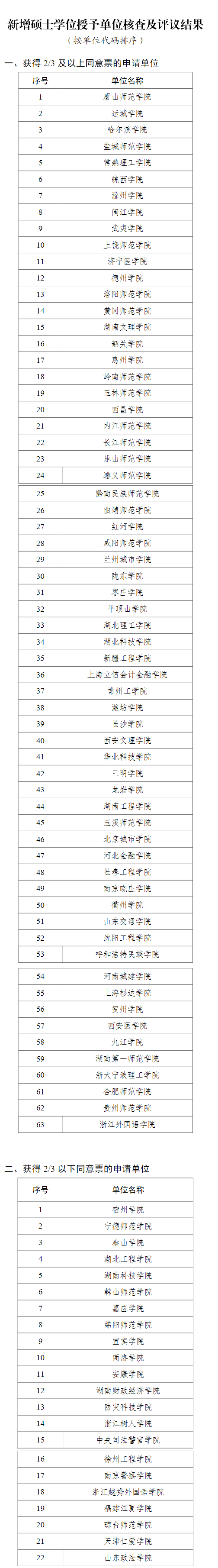 新增博士硕士学位授予单位