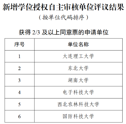 新增学位授权自主审核单位