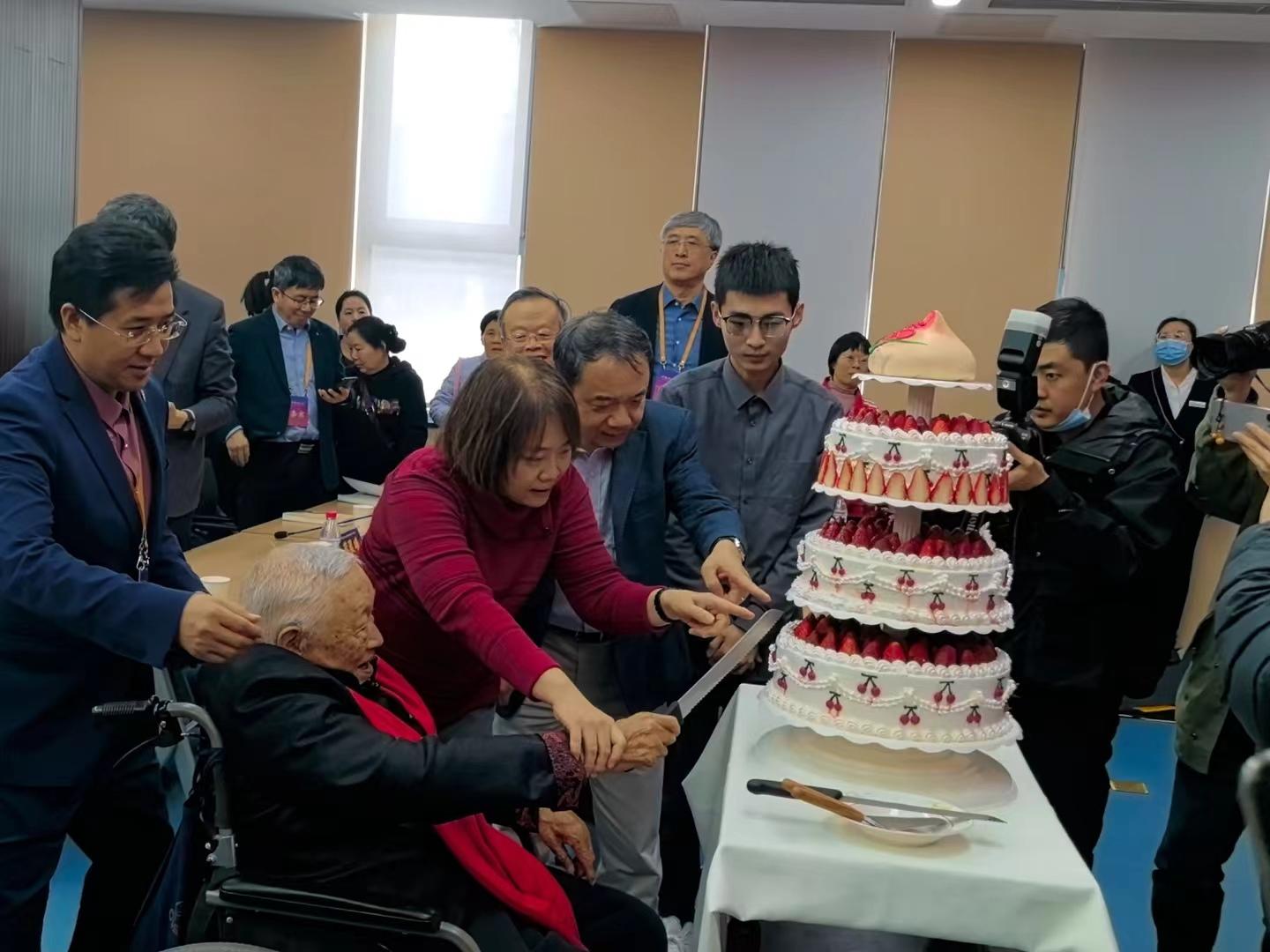 活动结束后,有人给他送上礼物,有人和他合影,更多人祝他能健康长寿。