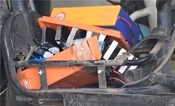 并且是由多快小电池组成的电池包,第一次爆燃发生后几秒钟,现场再次出现爆燃,此后的半分钟时间里,小电池如同鞭炮一般接连爆燃,不禁有剧烈的声响,现场烈焰也一度超过了2米,并且大量燃烧物四下飞溅,很快引燃周边纸箱。