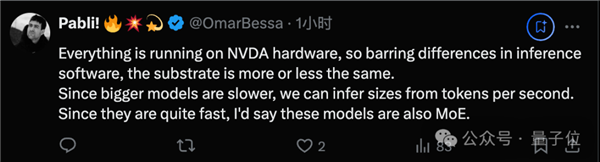 也有人认为,大多数模型都是在英伟达GPU上运行的,所以可以通过token生成速度来估计。