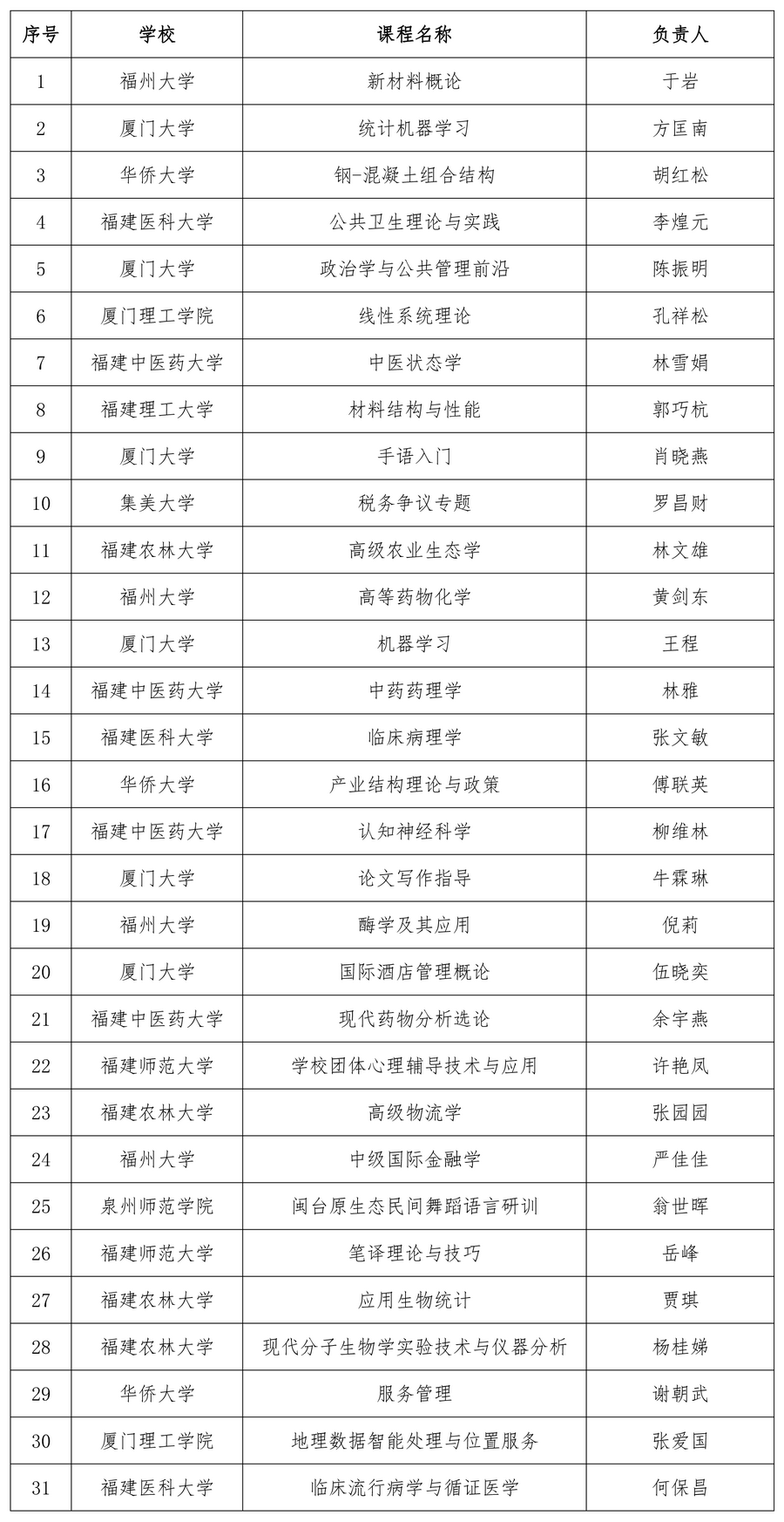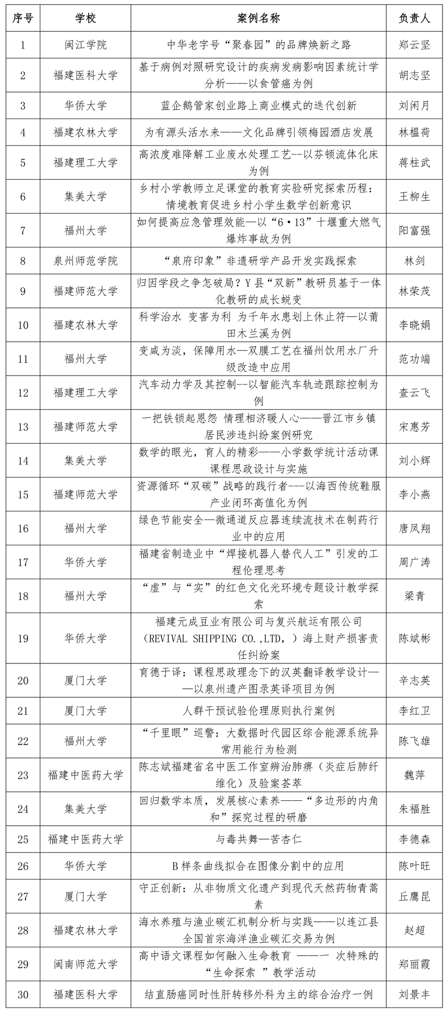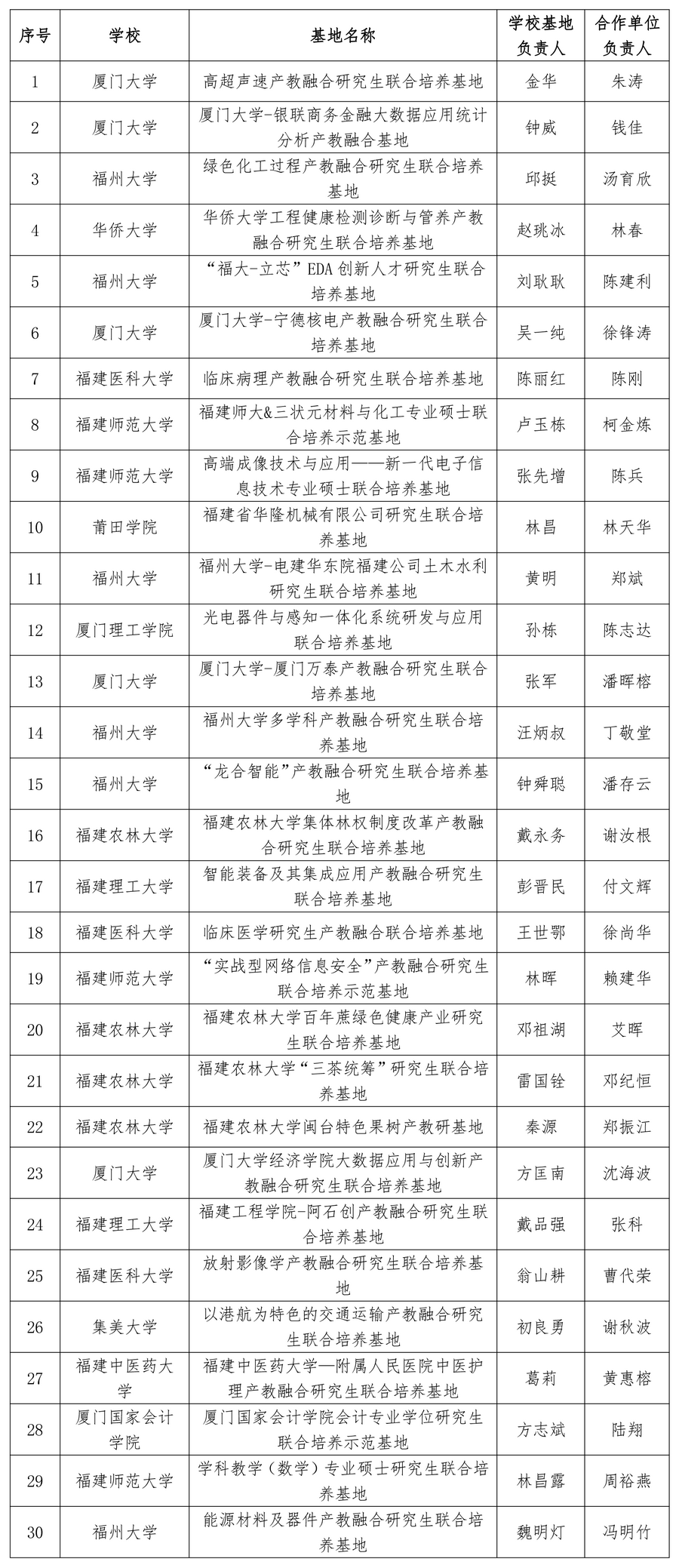 日前,福建省学位委员会办公室印发《关于公布第三批研究生教育项目名单的通知》。经高校申报、专家评审,省学位委员会办公室认定第三批福建省产教融合研究生联合培养基地30个、研究生教育精品课程31门、专业学位研究生优秀教学案例30个。
