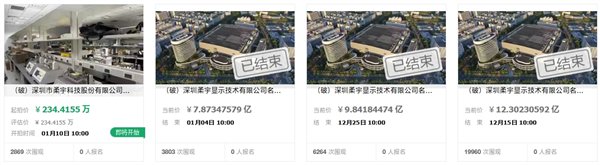 根据阿里司法拍卖官网显示,柔宇资产将会在1月10日开启第四次拍卖。