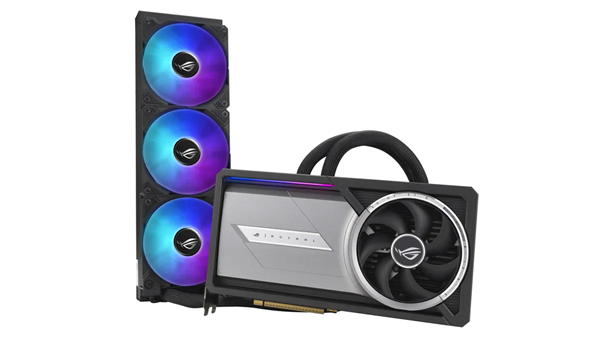 ROG ASTRAL系列显卡包含风冷和一体式水冷两种版本,风冷版本采用前方三风扇加后方一风扇的组合,而水冷版本则配备冷排三风扇和本体一风扇。