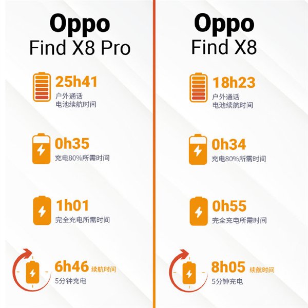 效率方面,Find X8整体电源管理表现优秀,但充满电后剩余电量消耗略微影响了效率评分;Find X8 Pro的电源管理则表现出色,在超高端设备中虽略逊于同级对手,但整体而言,它将长续航和高效电源管理高效结合,是同类产品中的优秀表现者。
