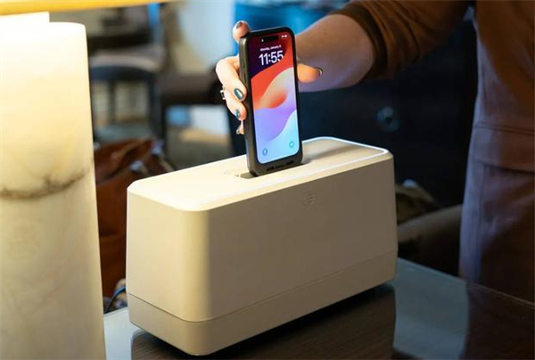 该系统包括三个部分:一个手机壳Swippitt Link、一个形似烤面包机的方盒子Swippitt Hub,以及一个用于查看电池信息的应用程序Swippitt App。