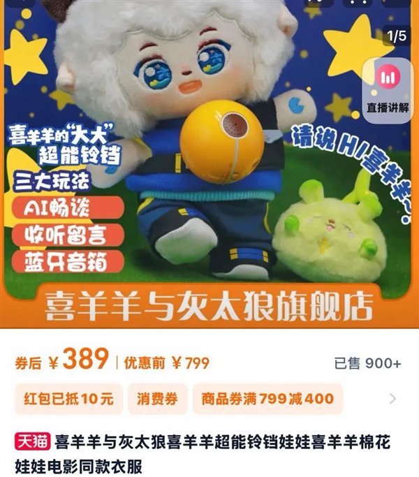 论小孩的熟悉程度,它可能都没有喜羊羊与灰太狼官方出的那款 AI 娃娃有吸引力。