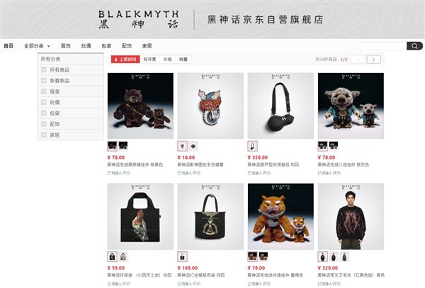 目前,黑神话BLACKMYTH首批产品已在天猫、京东的黑神话官方旗舰店和名创优品部分线下合作店铺上架。