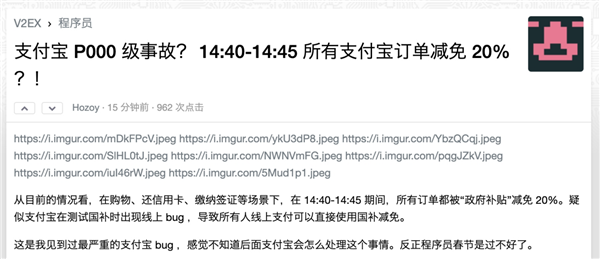 爆料者还称这是其见过最严重的支付宝Bug,“不知道后面支付宝会怎么处理这个事情,反正程序员春节是过不好了”。