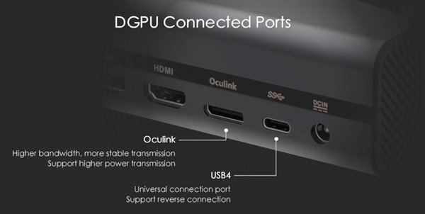它可以通过OCulink(PCIe 4.0 x4)、USB4接口,插入任何迷你机、掌机、笔记本。