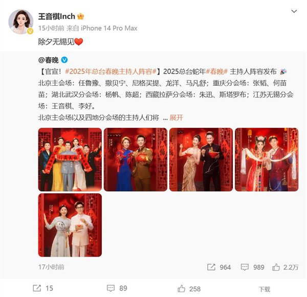 1月20日消息,据媒体报道,《2025年春节联欢晚会》发布主持人阵容。