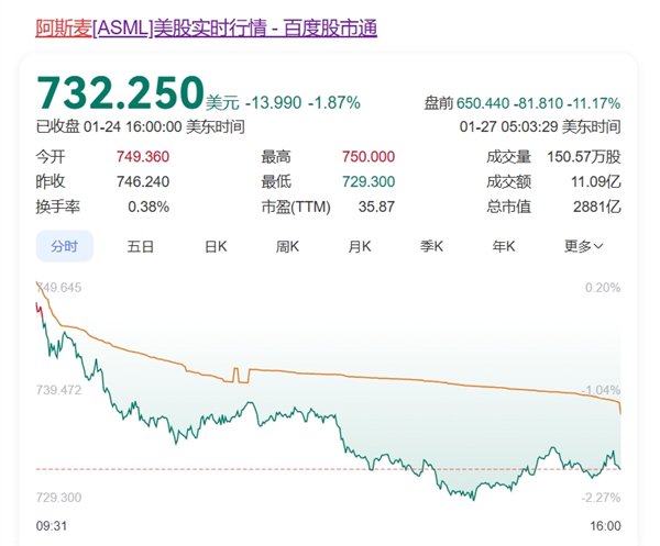 荷兰光刻机巨头阿斯麦(ASML)阿斯麦盘前大跌超11%,美国AI芯片龙头英伟达英伟达盘前一并走低,跳水近10%。