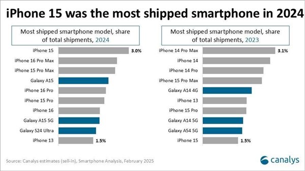 值得注意的是,苹果的旧机型依然展现出强劲的市场竞争力,iPhone 13和iPhone 14分别位列两大榜单之中。