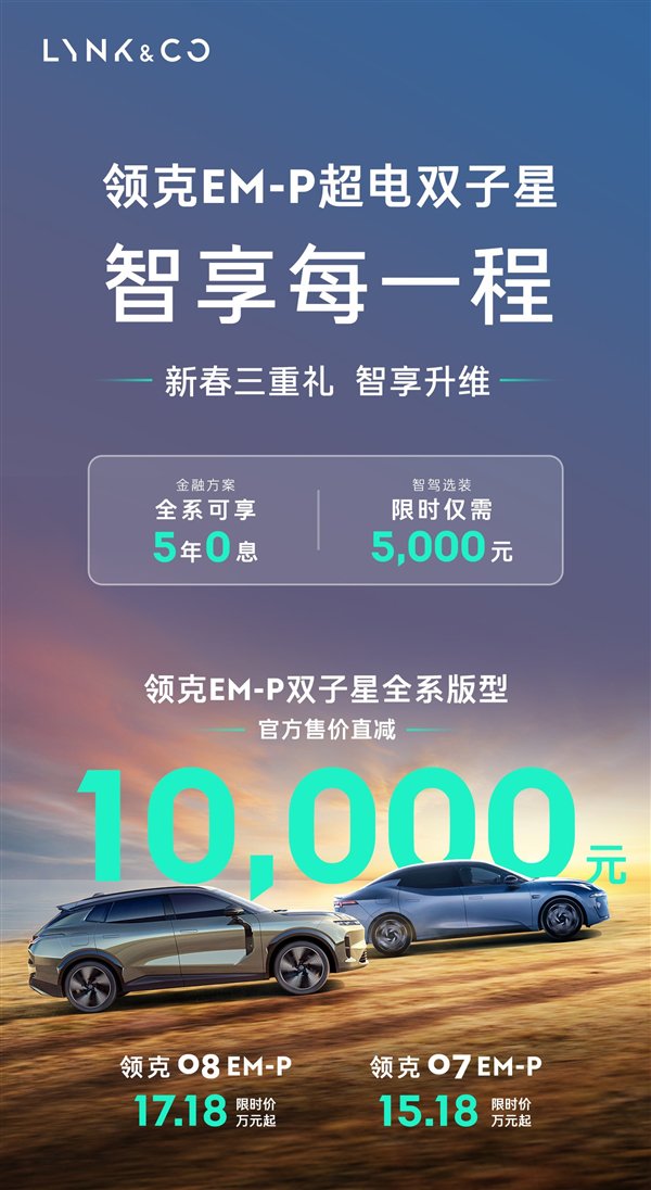 今日上午,领克汽车官宣,针对品牌旗下两款插电混动轿车07EM-P、08 EM-P推出限时优惠活动,一共三重:
