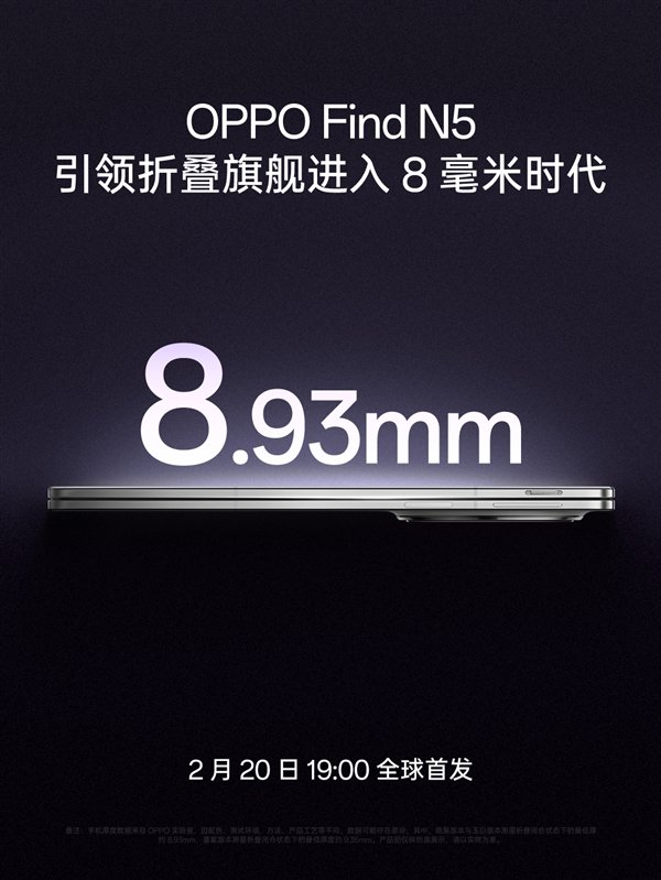不止于此,OPPO Find N5还把机身厚度做到了8.93mm,成为行业内最薄的折叠屏旗舰。