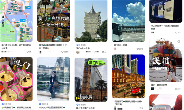 在小红书上最火、最具代表性的0元游目的地就是澳门,流行的攻略体系大差不差,我愿称之为澳门五段击: