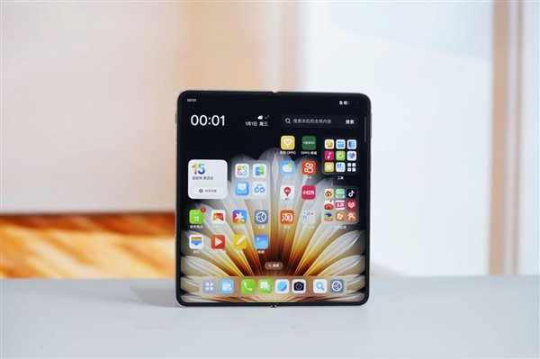 据悉,Find N5首次使用了可靠又强悍的3D钛合金铰链,做到了行业最薄,手上这台白色款,其折叠态厚度8.93毫米,单边厚度在4mm左右。