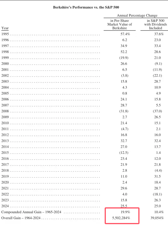 伯克希尔·哈撒韦的股价已经高达71万美元一股(约合人民币514万元),自1965年以来,公司市值惊人地增长了5.5万倍,年化收益率达到了令人瞠目结舌的19.9%。