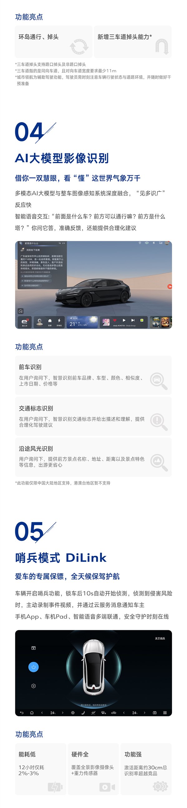 此次OTA还升级添加了AI大模型影像识别功能,多模态AI大模型与整车图像感知系统深度融合。