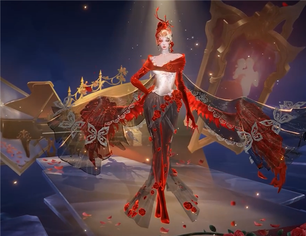 技能特效设计方面,整体以蝴蝶,玫瑰花作为核心设计元素,以红色与白金色的配色,呈现奢华,高贵的视觉感受。