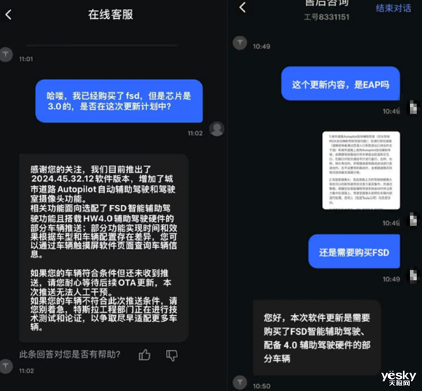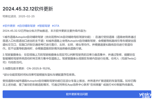 注意,经求证特斯拉官方客服表示,此次更新相关功能面向选配了FSD智能辅助驾驶功能且搭载HW 4.0辅助驾驶硬件的部分车辆推送,后续会逐步扩展适配车型范围。