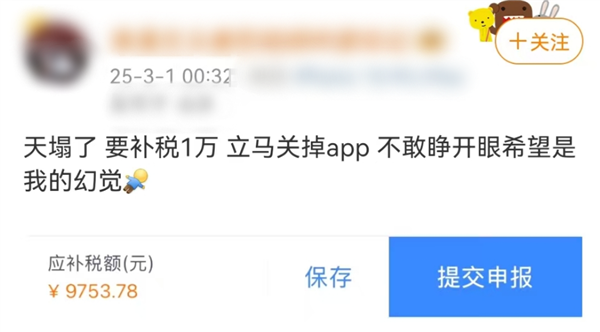 不过几家欢喜几家愁,还有网友晒出截图,称自己要补缴近1万元,吓得立马关掉APP,不敢睁眼,希望是幻觉。