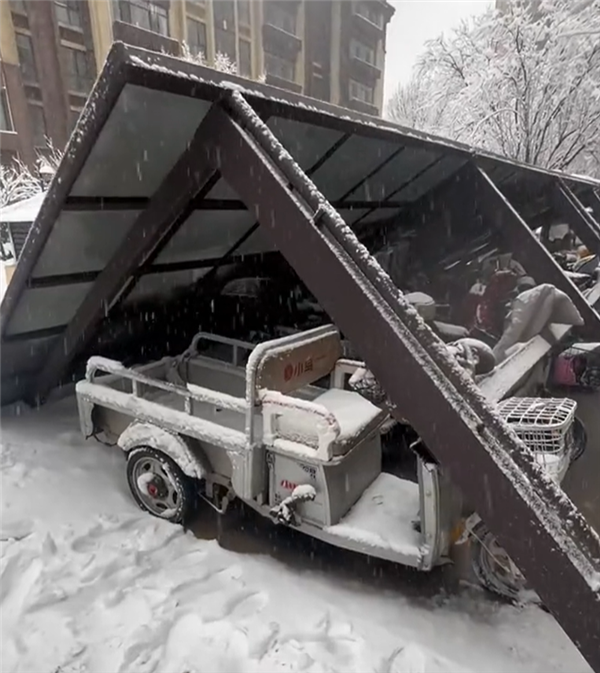 不过并非所有车主都有类似的好运气,在抖音上随便一搜就能看到各种因为暴雪压垮车棚导致车辆受损的视频,电动自行车还好,整体损失尚可接受,但一旦波及到机动车损失无疑就会倍增。