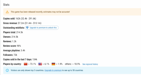 数据显示,该游戏中国玩家占比高达73.1%,成为其最主要的玩家群体。
