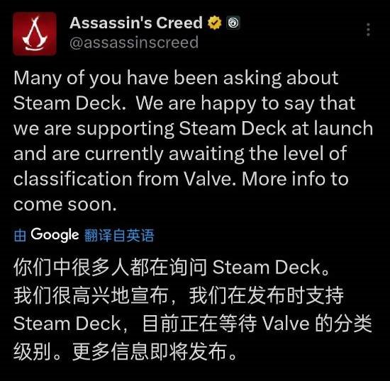 值得一提的是,育碧的最新公告确认,本作将在首发时支持SteamDeck,目前正在等V社的适配性分类。