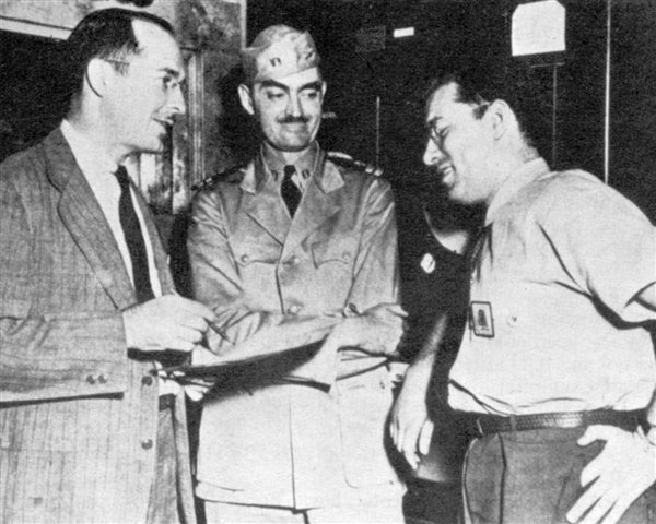 海因莱茵1929年毕业于美国海军学院,从军经历对其小说创作产生深远影响。他在二战期间曾效力于海军费城船厂(左一),当时有一位同事名叫艾萨克·阿西莫夫(右一)。