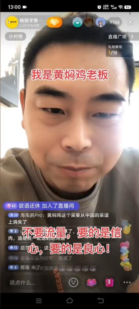 对此,河南新乡一家杨铭宇黄焖鸡米饭店老板开直播展示自家后厨及食材,并现场吃自家的黄焖鸡。