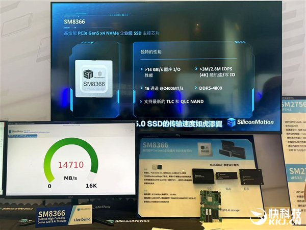 除了消费级主控方案,慧荣也在大力发展企业级市场,本次峰会上就再次展示了面向企业级AI SSD的高性能主控SM8366,以及MonTitanTM参考设计套件。