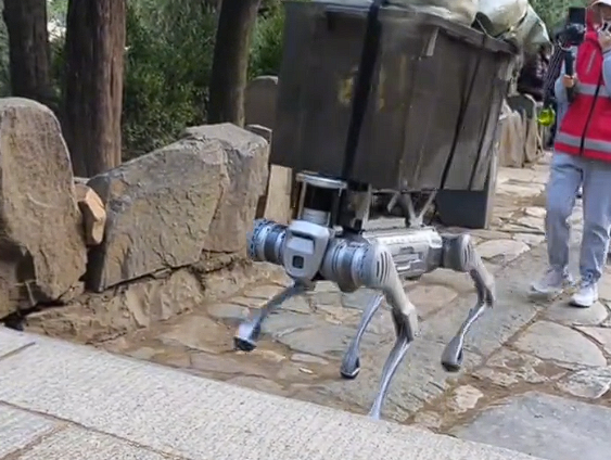 其爬坡速度令人惊叹,相较于人工搬运,足足快了一倍之多,并且可以适应泰山上80%的山道路段。凭借这些优势,机器狗极大地提升了货物的运输效率。