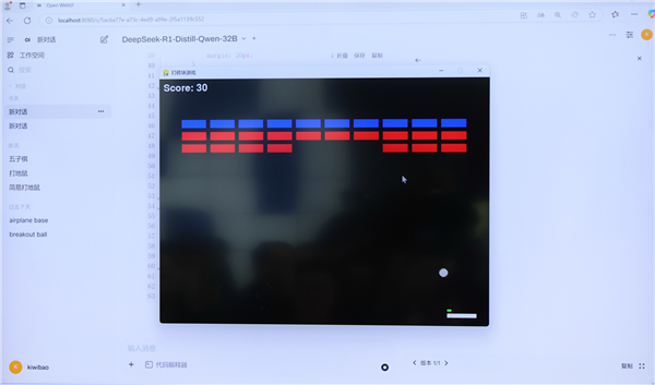 用它开发小游戏,比如打砖块、五子棋这种级别的,虽然速度说不上飞快,但依然完全在可接受程度内,生成的小游戏也都能正常运行。