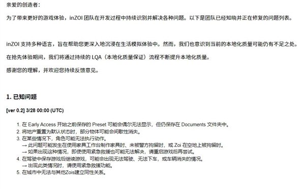 《inZOI》官方已承认这个问题,Steam公告表示:“当前版本存在同性关系缺失问题,我们正在紧急修复。”