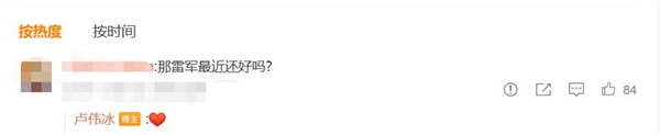 快科技4月5日消息,有网友在小米集团卢伟冰评论区提问:雷军最近还好吗?对此,卢伟冰回复了一个爱心的表情。