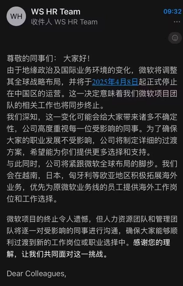 而根据最新消息,其中提及的“中国区的运营”为上海微创软件公司,该公司定位为企业数字化综合服务商,“行业里普遍叫微软的外包公司”。