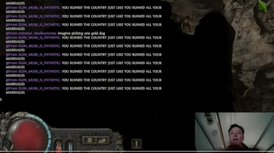 直播中马斯克操控的游侠角色在第一章可选BOSS“吞噬兽”面前屡战屡败,更尴尬的是,他随后竟在教程BOSS“浮肿米勒”处再度翻车。