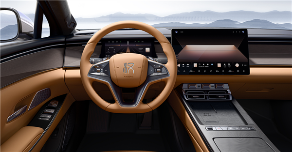 中控台采用3D 竹木饰板,通过 15 道工序雕刻出天然纹理,搭配皮革针织工艺与植绒处理。