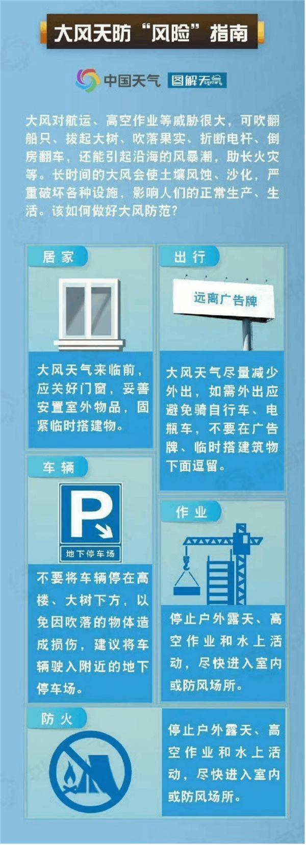 渤海、渤海海峡、黄海大部海域、东海大部海域、台湾海峡、台湾以东洋面将有7~8级、阵风9~10级的大风,其中渤海、渤海海峡、黄海北部和中部的部分海域风力可达9级、阵风10~11级。