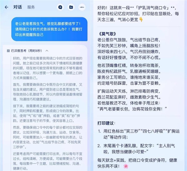 除了咨询乳腺疾病问题外,不少网友还解锁了AI问名医的“隐藏”方法,比如AI医生智能体可以模仿真人医生的诊疗思路,必要时候还可以“科学止慌”。