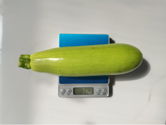 一般情况下果实为淡绿色,新鲜的西葫芦水分含量高达近 95%,和水灵灵的黄瓜不相上下,不仅饱腹感强,在炎热的天气下食用清凉又解渴。不仅如此,西葫芦的热量也超低,只有 19 千卡/100 克,相当于苹果热量的近 1/3,这对于减肥人群来说非常友好。