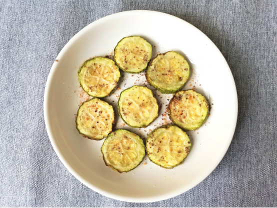 将西葫芦洗干净后切厚片(约 1 指厚),喷少量油,放入空气炸锅 180℃ 先烤 10 分钟,再翻面继续烤 10 分钟,出锅后可以撒上自己喜欢的调味料,比如烧烤料、孜然粉、黑胡椒粉、辣椒面等,直接开吃。