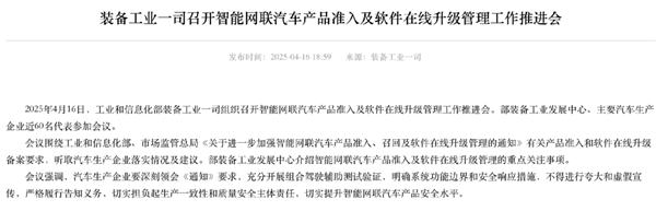 4月16日,工信部组织召开智能网联汽车产品准入及软件在线升级管理工作推进会,对智能驾驶、OTA、汽车审查和整改方面提出了新要求。