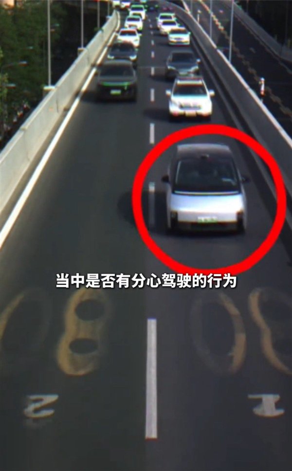 无人机发现一“龟速行驶”车辆后,交警通过无人机近距离观察驾驶员,发现驾驶员一边开车一边玩手机。