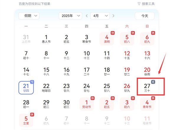 快科技4月21日消息,据媒体报道,根据放假安排,2025年劳动节将放假调休共5天,从5月1日(周四)持续到5日(周一),4月27日(周日)则调整为工作日,在此提醒,本周日需要正常上班,iPhone用户需要单独设定好闹钟。