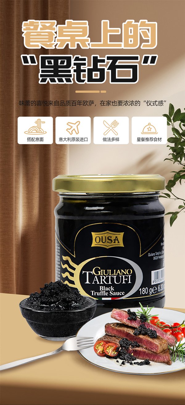 意大利欧萨黑松露酱,精选优质野生黑松露,餐桌上的黑钻石。