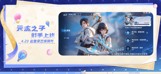 《王者荣耀》今日宣布,英雄“元流之子”将于4月23日上线射手形态,登录游戏直接拥有,无需手动领取。